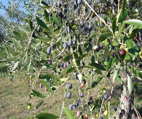 für gute Ölqualität ist es wichtig, dass der Reifegrad unterschiedlich ist, erkennbar an dunkler und heller Farbe der Frucht.